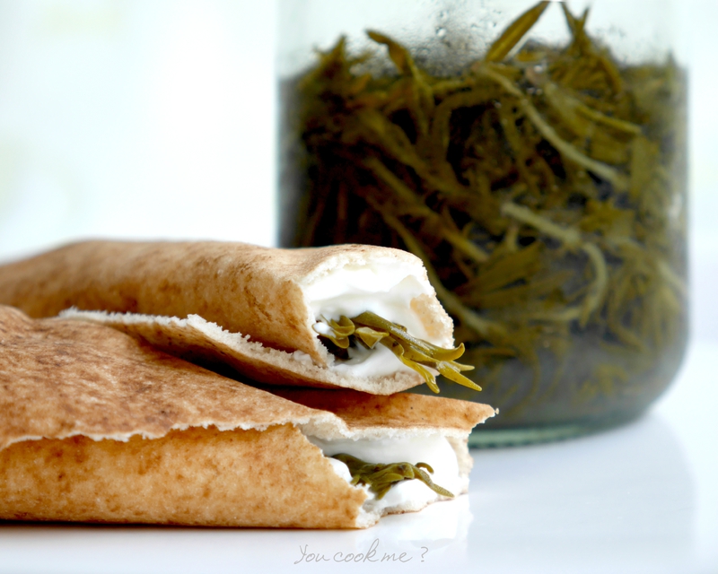 L’avantage du pain libanais, une galette très fine qui se sépare en deux très facilement, c’est qu’il se roule comme une crèpe, se partage en triangle, se découpe en lanière, et surtout se fourre à l’infini de plein de bonnes choses.